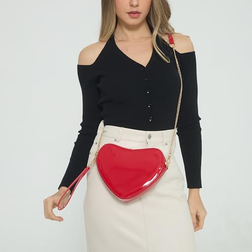 in-demand ! Heart Women Shoulder Bag Glossy Vegan Leather Chain Cross Body Bag Cosplay Purse