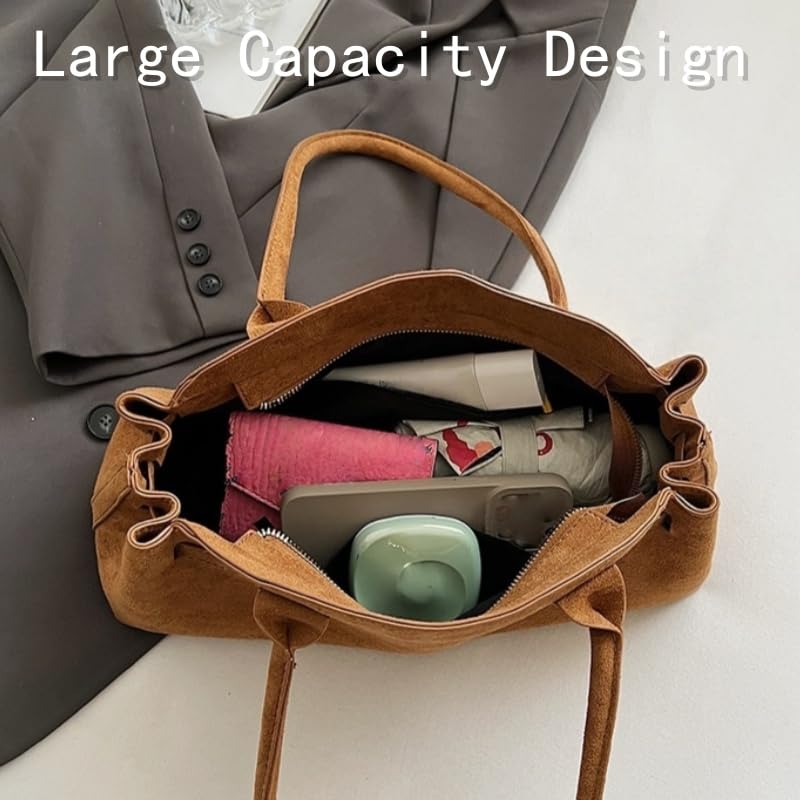 Origin: ImportedClosure type: ZipperSimple Style:Shoulder handbag features a timeless solid color design,3 fashionable colors to choose from,exuding a vintage sophistication,it's casual and versatile,suit for pairing with your coats and trench coats in the fall and winter seasonsPremium Material:Crafted from faux suede,this brown shoulder bag offers the elegant look and feel of suede with easy-care durability,making it the ideal brown purse for autumn fashion trendsLarge Capacity Design:Shoulder purse measuring 34*15*11cm(13.3*5.9*4.3in),suit for fit your daily items such as cellphone,wallet,tissue,makeups and more,meet most of your needs to store daily suppliesMultiple Usage Scenarios:Women's shoulder bag is suitable for many occasions,whether it is a daily commute or a weekend outing,whether worn as a shoulder bag,or handheld,it can elevate your fashion imageThoughtful Gift:Trendy classic handbag is a good option as a gift for ladies for your mom,sisters,or your female friends on their birthdays or some special festivals which can enhance your relationship better Perfect for everyday use. superior materials and excellent craftsmanship ensure long-lasting durability.
