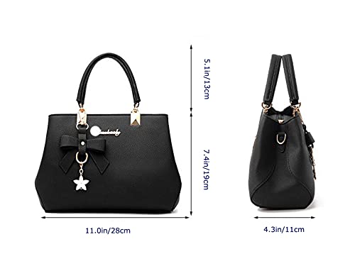 Top-handle Handbags Purse for Women Small Satchel PU Leather Shoulder Crossbody Bag with Bowtie Pendant