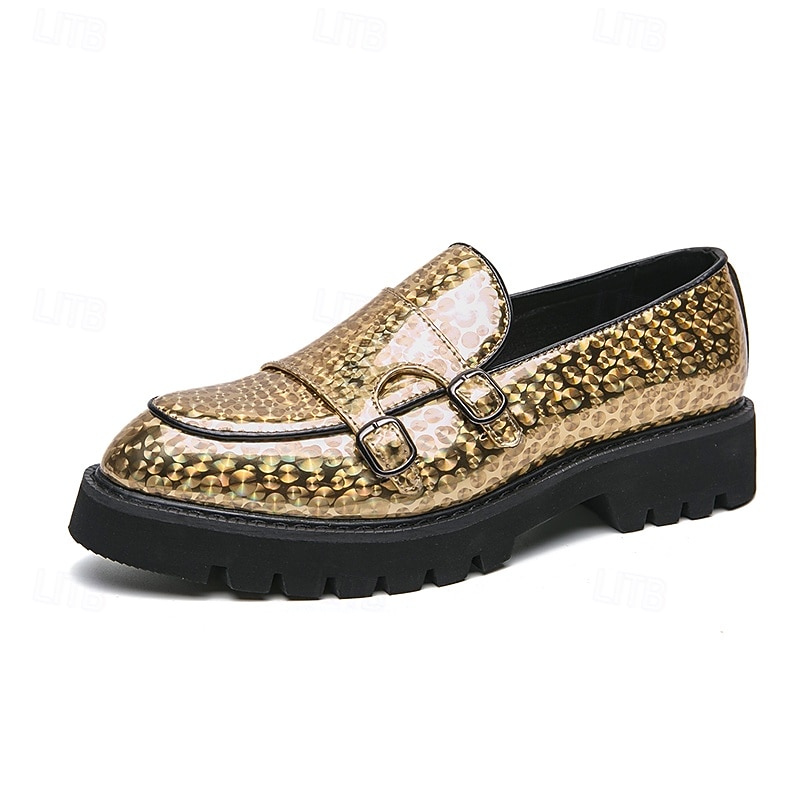 This Men's Gold Metallic Loafers with Double Buckle and Chunky Sole - chic Party Shoes for Formal and Casual Occasions combines elegant design with practical functionality. Every detail has been carefully considered to ensure you get the best possible experience. The supreme construction means this product will serve you well for years to come.