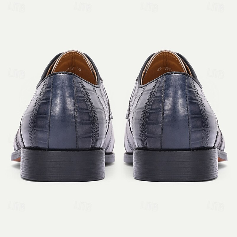 Why Choose Men's Premium Cowhide Crocodile-Embossed Oxfords with Brogue Detailing – Brown and Black Color Block for Formal and Business Occasions?