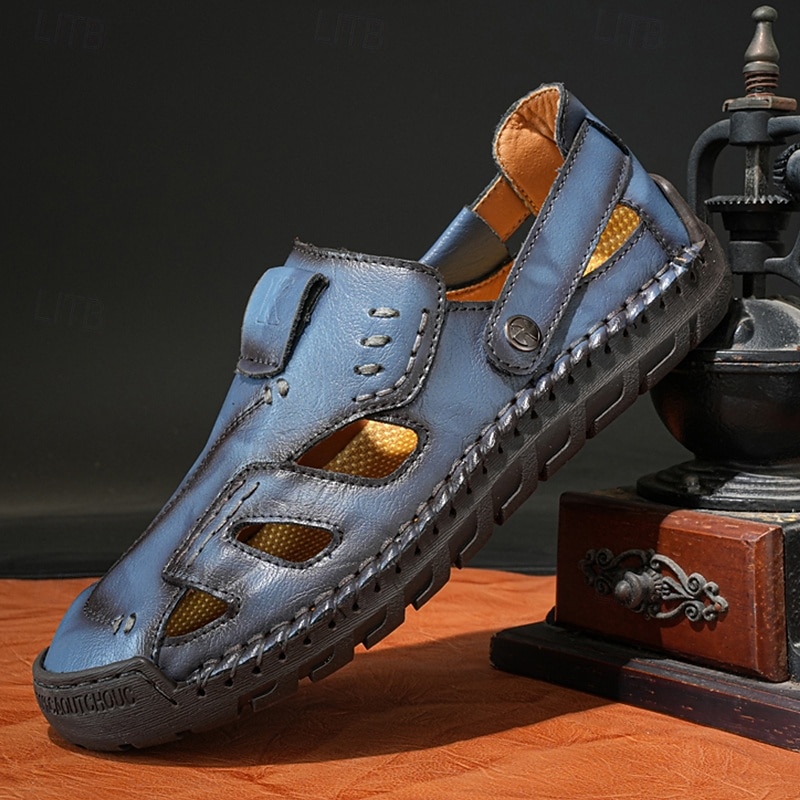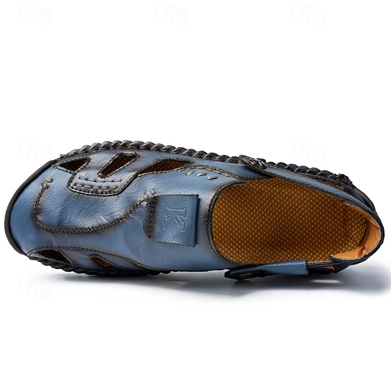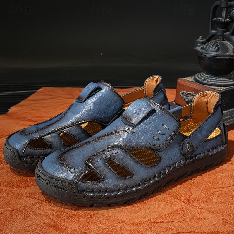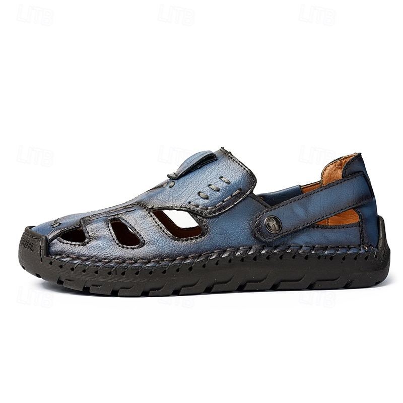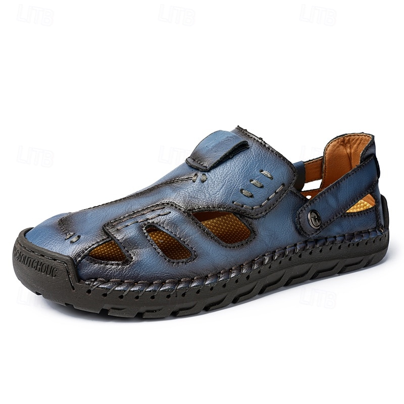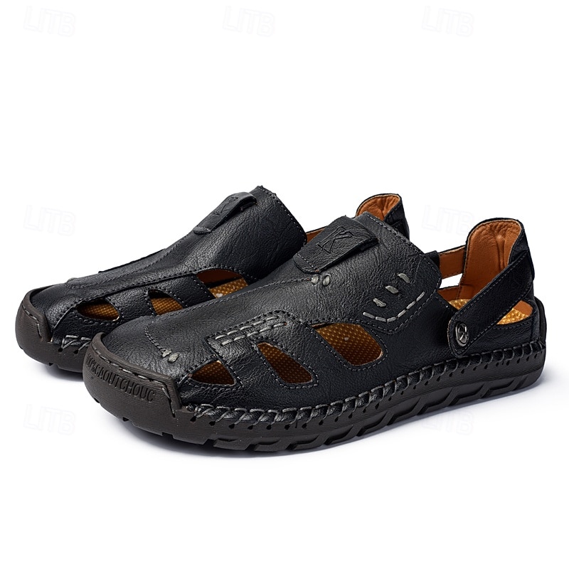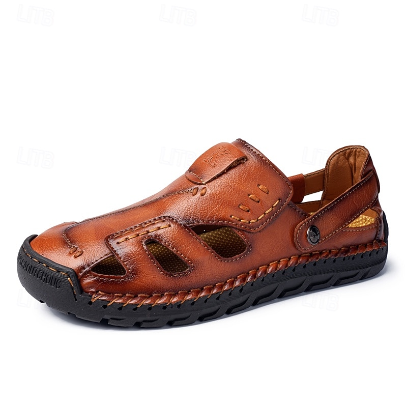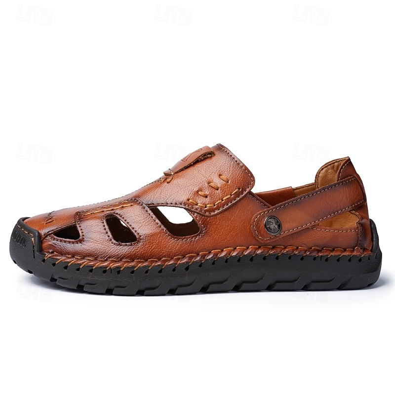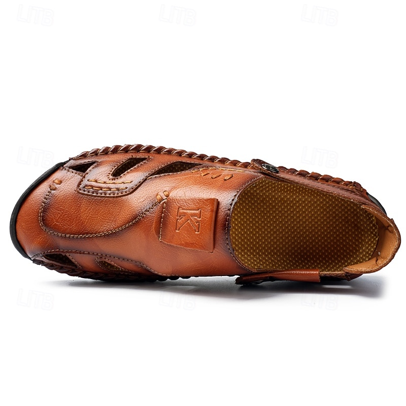 in-demand ! Men's Brown Faux Leather Sandals with Perforated Design, Adjustable Strap, and sturdy Sole – pleasant for Casual Wear, Outdoor and Summer Activities
