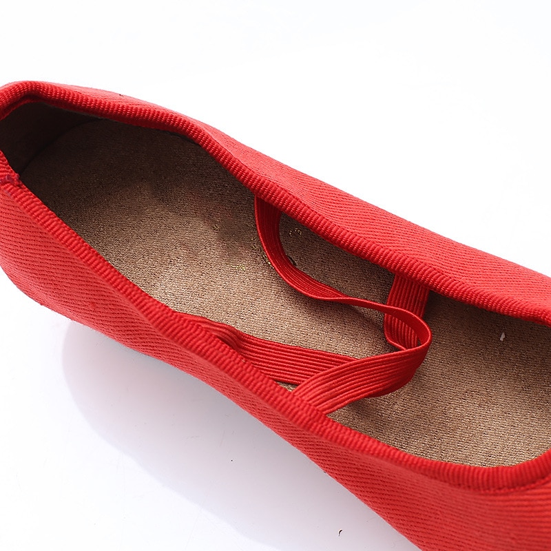 Women's Red Low-Heel Dance Shoes with Elastic Cross Straps – pleasant and Lightweight Design for Ballet, Jazz, and Performance