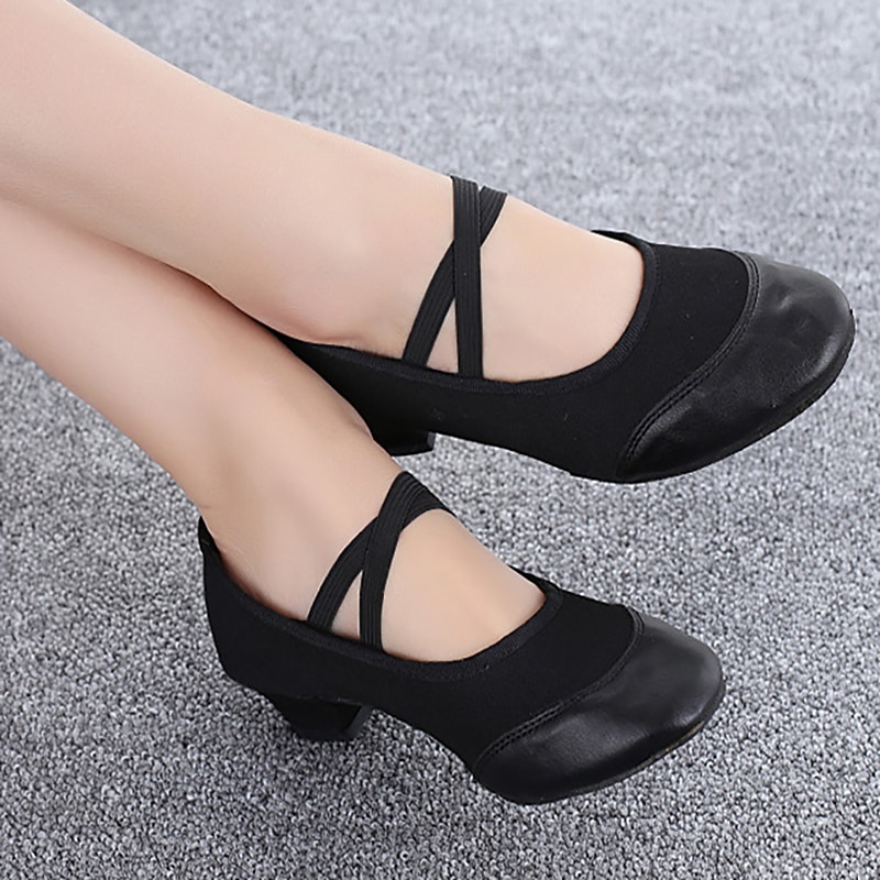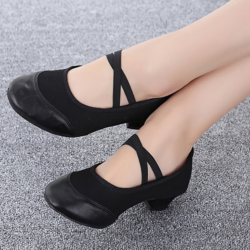 Highlights [Fabric and Material] : Crafted from breathable canvas, these women's ballroom and modern dance shoes ensure comfort and flexibility, making them perfect for extended wear. The high-quality rubber outsole provides a non-slip grip, ensuring durability and practicality. [Silhouette and Fit] : Featuring a medium-height block heel, these shoes offer stability and a slight elevation. The rounded toe area is reinforced with a smooth, glossy finish for enhanced durability, making them suitable for both casual and semi-formal occasions. [Design Highlights] : The upper part showcases a fashionable crossover strap design coupled with an elastic band closure, providing both an aesthetic appeal and additional foot support. This combination offers a modern and elegant look that stands out on the dance floor. [Occasions] : Perfect for stage performances, outdoor practices, ballroom dancing, waltz, and a variety of other dance settings. These shoes are a versatile choice for any dance enthusiast, adding charm and style to your dance wardrobe. [Size Range] : Available in a range of sizes from US5 to US8.5 (EU35 to EU39, UK3 to UK6.5), ensuring a fit that caters to various preferences and requirements. Perfect for everyday use. superior materials and excellent craftsmanship ensure long-lasting durability.