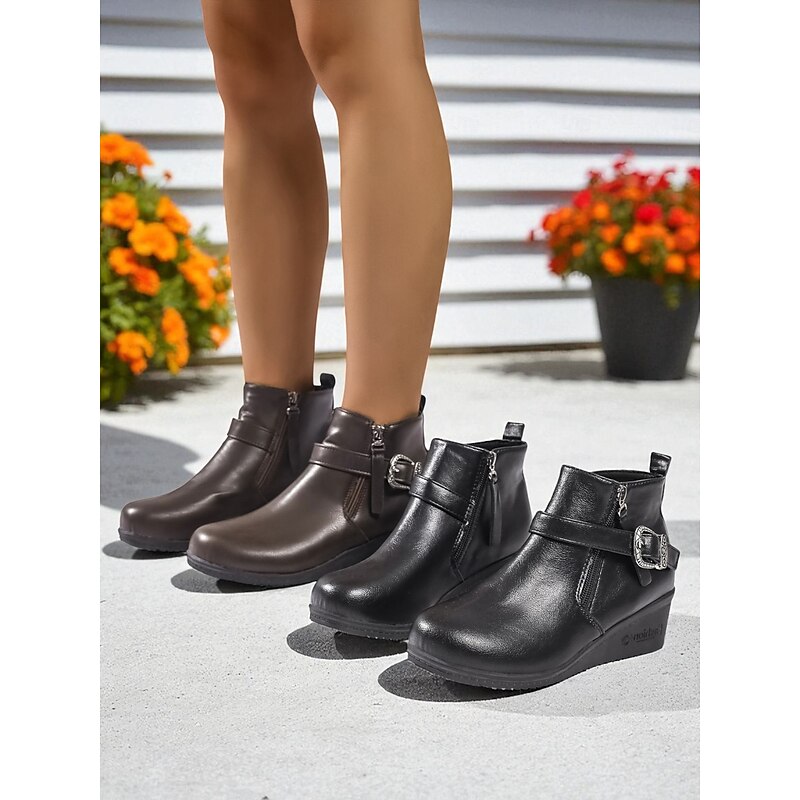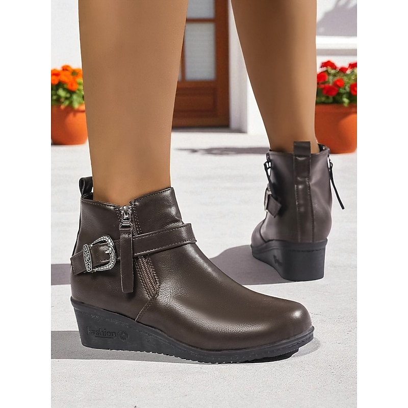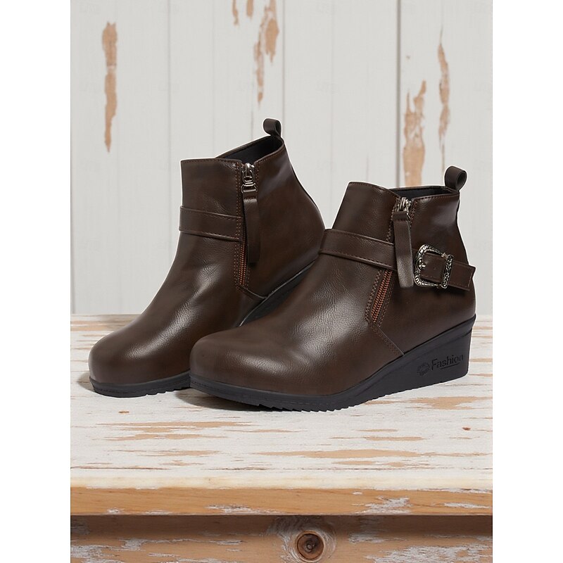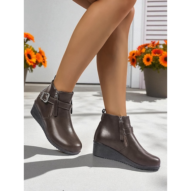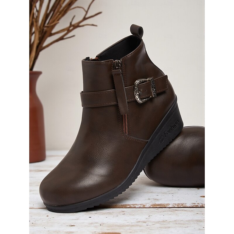This Women's Brown Faux Leather Ankle Boots with Side Zipper – pleasant Wedge Heel Short Boots for Work and Casual Walking combines elegant design with practical functionality. Every detail has been carefully considered to ensure you get the best possible experience. The excellent construction means this product will serve you well for years to come.