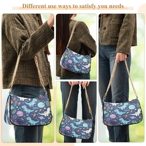Shoulder Bag for Women Cute Dinosaur Pattern Tote Handbag Crossbody Bag with Zipper Closure