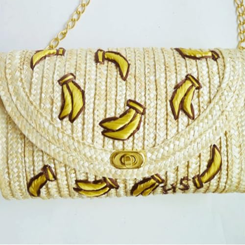 Why Choose Banana Purse Straw Woven Banana Embroidered Crossbody Shoulder Bag with Chain Mini Trendy Fruit Purse for Women?