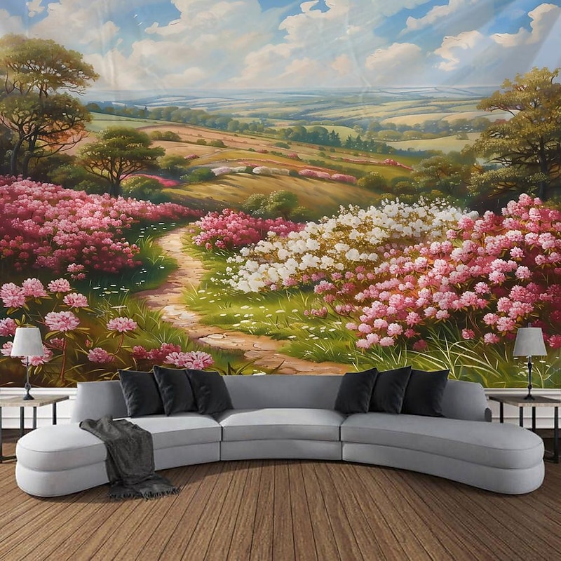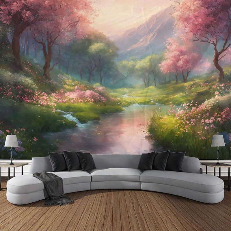Cherry Blossom Landscape Hanging Tapestry Wall Art Large Tapestry Mural Decor Photograph Backdrop Blanket Curtain Home Bedroom Living Room Decoration