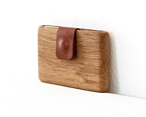IPPINKA Wood Wallet, Oak Wood with Leather Pull-Out Strap, Minimalist Wallet for Men or Women, Slim Card and Money Bill Holder