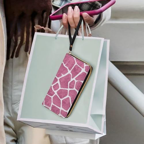 in-demand ! Niapessel Women's Wallets, Pink Giraffe Skin Print Large Zip Around Leather Travel Long Purse with Wrist Strap Card Cases & Money Organizers