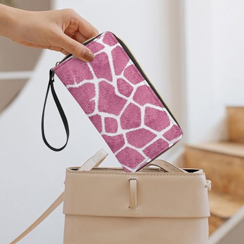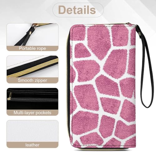 More information about Niapessel Women's Wallets, Pink Giraffe Skin Print Large Zip Around Leather Travel Long Purse with Wrist Strap Card Cases & Money Organizers