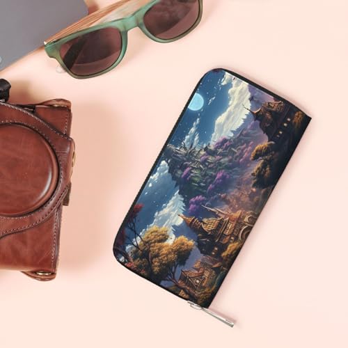 More information about Pu Leather Wallet For Women Girl, Zip Around Credit Card Holder Fantasy Town Long Wallet Clutch Purse Waterproof Travel Handbag