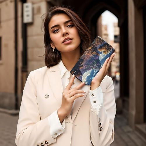 in-demand ! Pu Leather Wallet For Women Girl, Zip Around Credit Card Holder Fantasy Town Long Wallet Clutch Purse Waterproof Travel Handbag