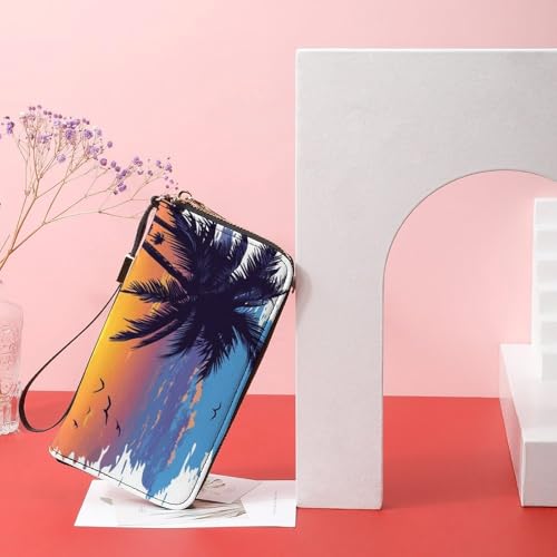 Beach, Sunset PU Leather Clutch Long Bifold Wallet, Coin Purse Credit Pass Case, robust Card-Holder Money Storage for Women Men