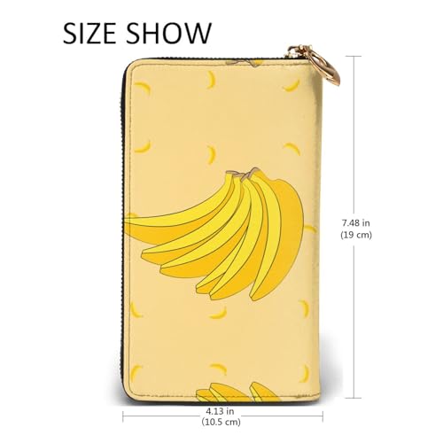 Brand: GGNKDLColor: BlackMaterial: LeatherClosure Type: ZipperProduct Dimensions: 7.48D x 4.13W x 0.98HLarge capacity wallet: This GGNKDL cartoon banana printing wallet has a total of 12 credit card slots, 3 full pocket cash slots, and a built-in change zipper compartment. The capacity design is reasonable and the size ratio is scientific, which can meet your needsMaterial Description: Advanced synthetic leather and high-quality metal zippers are used, and the inner layer is also made of soft fabric, making it more comfortable and convenient for you to use in the later stage.Product performance: The GGNKDL cartoon banana printing wallet has multiple layers of design inside, which can keep your credit cards, cash, coins, receipts, checkbooks, and mobile phones in order. The zipper design protects your credit cards from being lost and prevents our credit card privacy information from being leaked.Applicable scenarios: Designed with practicality as the foundation, specifically for fashionable girls and women, fashionable and personalized. This is a great choice as a gift for your mother/daughter/girlfriend, close friend, or teacher.GGNKDL cartoon banana printing After sales service : Thank you for choosing this product. We believe that this product will also bring convenience and happiness to your life. Our materials and designs are of fine, so please feel free to choose. Perfect for everyday use. superior materials and excellent craftsmanship ensure long-lasting durability.