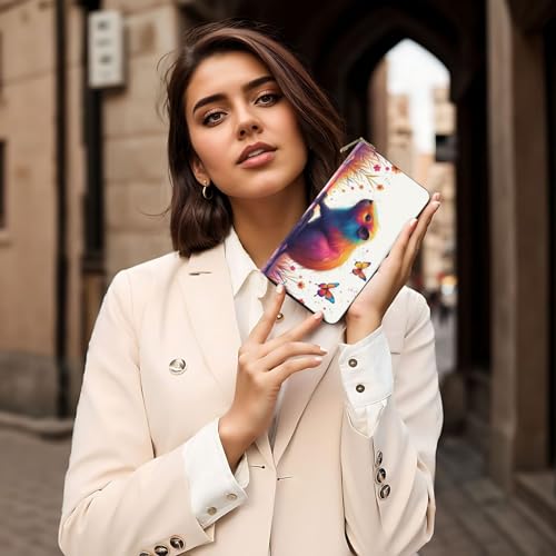 Wallet Women - Colorful Cute Hamster Print Leather Wallet for Women with Zipper, Cute Bifold Long Ladies Wallets