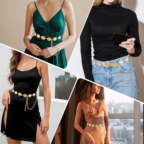 Unique Style: This gold belt has a total of 9 conchos connected together and engraved with delicate daisy patterns, which is fashionable and charming, elegant and tasteful, and will show your personalityAdjustable Size: This chain belt has a circumference of 67cm and comes with a 50cm long extension chain. You can easily adjust it to the right size as needed, suitable for most people's waist circumferenceQuality Materials: This gold chain belt is made of quality metal materials, smooth and shiny, lightweight and comfortable, sturdy and reliable, not easy to break and fade, and can serve you for a long timeWidely Applicable: This gold waist chain can be widely used to match dresses, skirts, jeans, etc., adding elegance and fashion to your appearance, very suitable for daily wear, vacation, party, event, etc.Perfect Gift: This western belt for woman is exquisite and elegant, and is an ideal gift for mothers, sisters, wives on birthdays, weddings, anniversaries, Mother's Day, Christmas and other occasions Perfect for everyday use. superior materials and excellent craftsmanship ensure long-lasting durability.