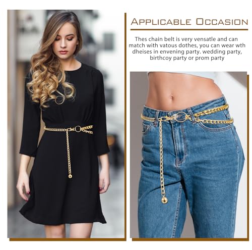 Item width: 4.09 inchesMaterial: MetalMetal type: AlloyItem type name: Gold chain beltPRODUCT CONTENT: You will receive 1 exquisite gold chain belt, which highlights the wearer's extraordinary taste with its elegant design and excellent craftsmanshipALLOY MATERIAL: The gold belts for women are made of high-quality alloy material, with attractive metal luster and solid structure, which can withstand the friction and pulling in daily useELEGANT DESIGN: The gold waist chain adopts a unique double-layer chain design, which is very fashionable and elegant, and can instantly enhance the sophistication of the overall shapeADJUSTABLE SIZE: The body waist chain is also specially designed with an adjustable waist length, which is an extremely thoughtful and practical design detail. It can easily adapt to the waist size needs of most womenMULTI-PURPOSE: The metal women's body chain is suitable for wearing in various occasions, whether it is daily wear or attending banquets. It can also be used as a waist chain, belt chain, belt chain, etc Perfect for everyday use. superior materials and excellent craftsmanship ensure long-lasting durability.