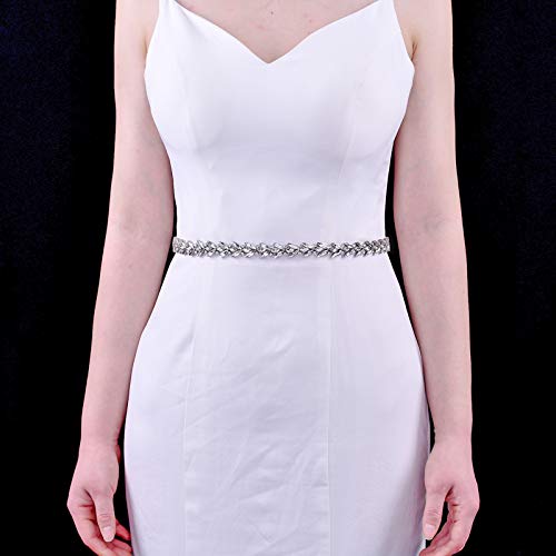 ULAPAN Rhinestone Wedding Belt Thin Silver Bridesmaid Dress Belt Wedding Sash Bridal Belt(S493)