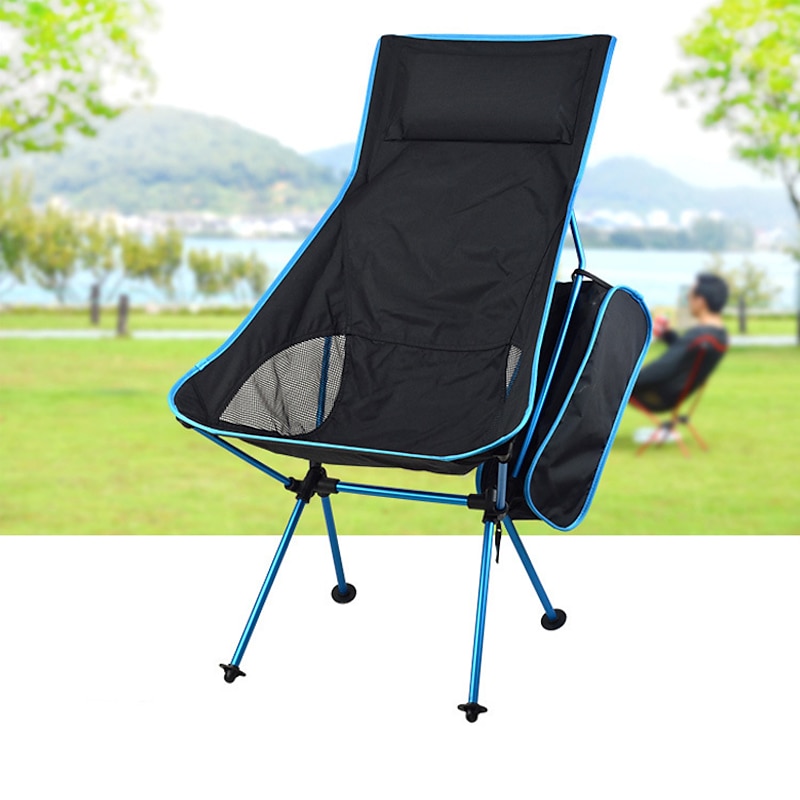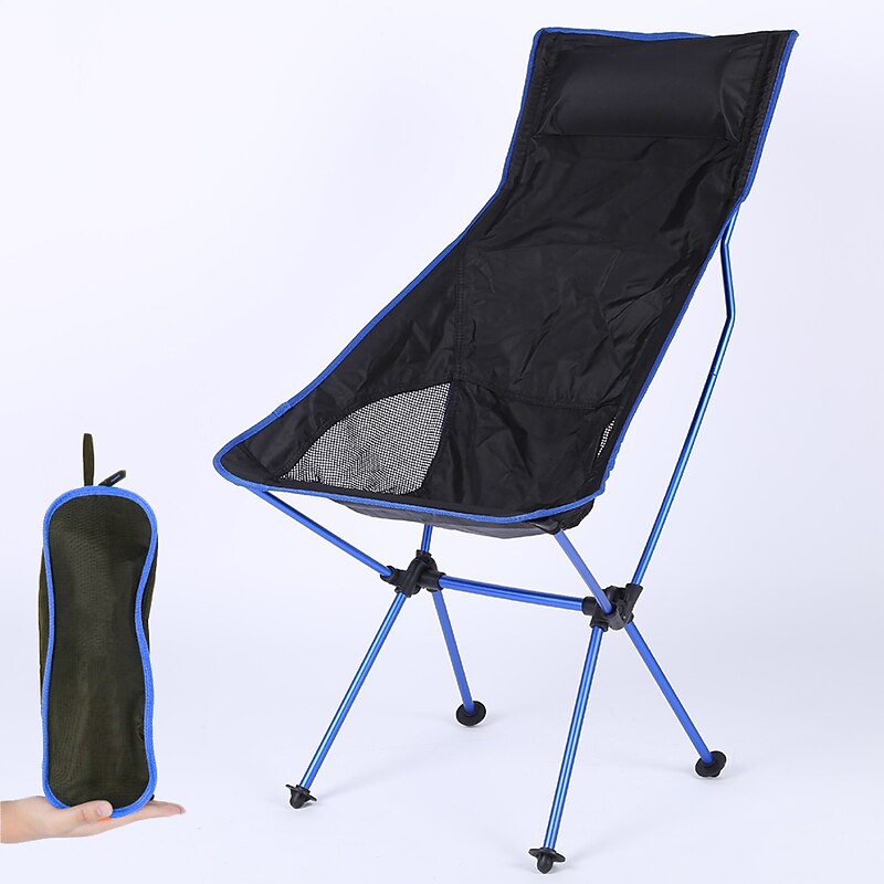 in-demand ! Folding Chair Beach Chair Camping Chair Fishing Chair High Back with Headrest Ultra Light (UL) Foldable Breathable Compact Mesh 7075 Aluminium Alloy for 1 person Fishing Blue Red Orange Dark Blue