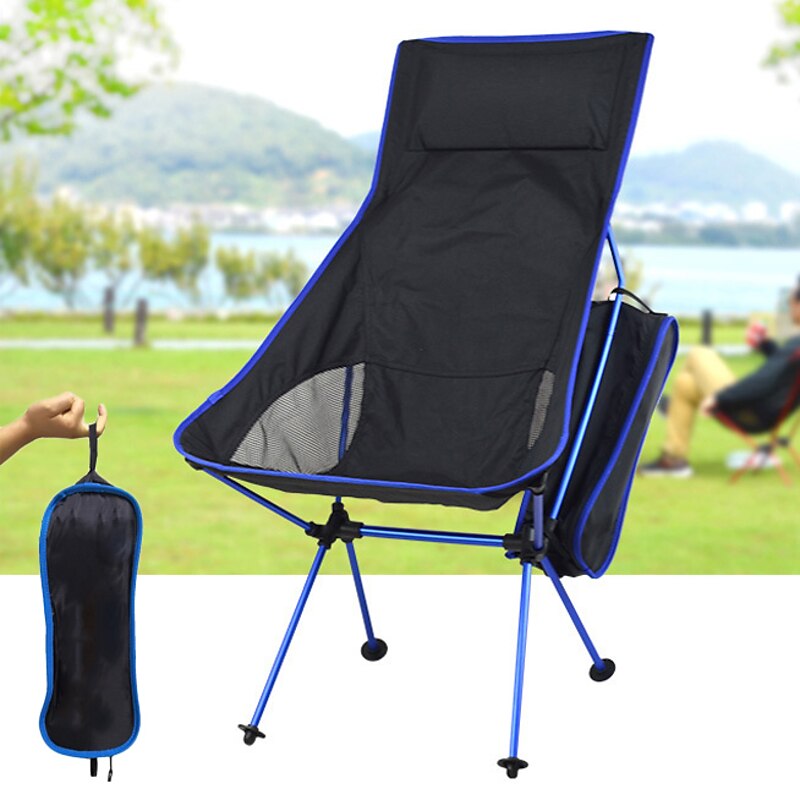More information about Folding Chair Beach Chair Camping Chair Fishing Chair High Back with Headrest Ultra Light (UL) Foldable Breathable Compact Mesh 7075 Aluminium Alloy for 1 person Fishing Blue Red Orange Dark Blue