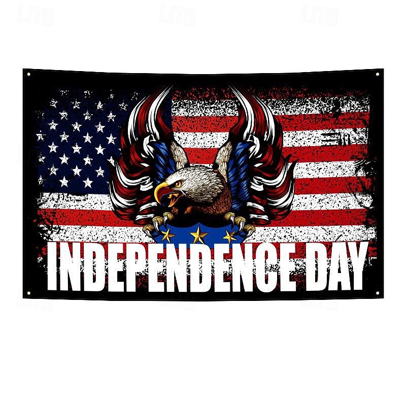 Highlights [Material] : Crafted from high-quality polyester, this US 4th July Independence Day Outdoor Flag is designed to withstand various weather conditions, ensuring durability and longevity. Its machine washable feature ensures easy maintenance and retains vibrancy over time. [Design & Style] : This flag highlights a striking 3D printed design, featuring a proud bald eagle against the American flag, symbolizing liberty and patriotism. The new-age geometric style adds a contemporary twist to a traditional symbol, making it a fitting choice for national holidays and events. [Design Highlights] : The bold visual contrast of the eagle in the foreground against the iconic red, white, and blue flag backdrop creates a powerful statement of national pride. The reinforced edges and metal grommets enhance its durability and ease of use, whether displayed indoors or out. [Occasions] : Ideal for patriotic displays, national celebrations, and themed events such as 4th of July gatherings, this flag serves as a vibrant decoration for both garden and home. It’s excellent for expressing national pride during important holidays or as a striking everyday accent. [Size] : Measuring 24 inches by 35 inches (60 cm x 90 cm), this standard-size flag is suited for various display settings, including flagpoles, walls, or as a thematic backdrop, providing flexibility to fit your decorative needs.