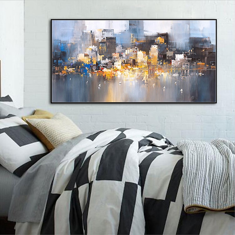 in-demand ! Oil Painting Handmade Hand Painted Wall Art Abstract Urban Landscape Skyline Home Decoration Décor Rolled Canvas No Frame Unstretched