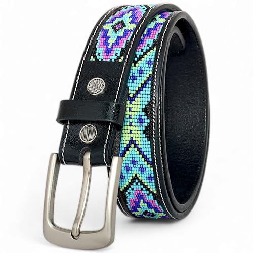 in-demand ! Black Leather Beaded Belt, Handmade Gift For appreciate, Gift For Mom/Dad.