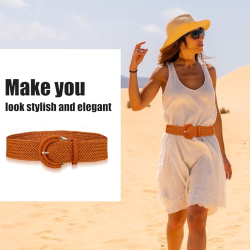 Package Content: You will receive 2 pieces of braided waist belts in 2 colors, which are essential additions to women's or girl's wardrobe.Adjustable Size: This wide rattan belt measures 98x5cm/38.58x1.97 inch, having great elasticity, with non-hole design, you can adjust its length according to your needs.Premium Material: Our women's wide belt is made of natural woven material with alloy button, which is lightweight and stretchy, and can be used for a long time.Product Design: The waist belt feature a rattan woven design, and the retro and bohemian style makes your daily wearing more attractive, adding a touch of color to your outfit.Wide Usage: The braided waist belt is perfect for casual wearing in any season, and it's a great choice for daily wearing, beach, parties, picnics, travel, etc., making you stylish and elegant. Perfect for everyday use. first-class materials and excellent craftsmanship ensure long-lasting durability.