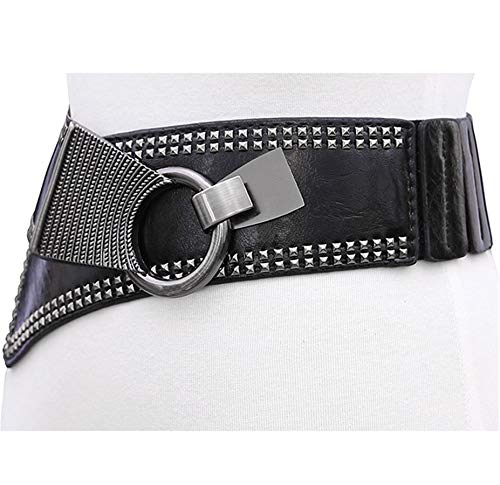 Andongnywell Women's Elastic Waist Belts Studded Belt for Dress Vintage Leather Punk Waist Belt Waist Band Waist Strap