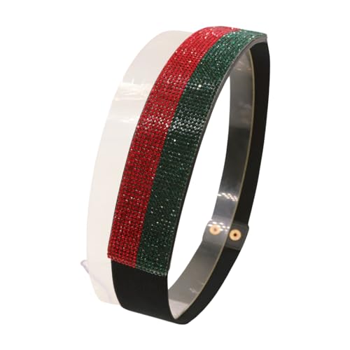 • Elevate your style with our Trendy Women Designer Inspired Collection Ladies Fashion Belt, featuring a dazzling array of red and green rhinestones on a black elastic waistband. Whether worn high on the waist or slung low on the hips, this belt adds a touch of glamour and sophistication to any outfit, making it the magnificent accessory for day or night.