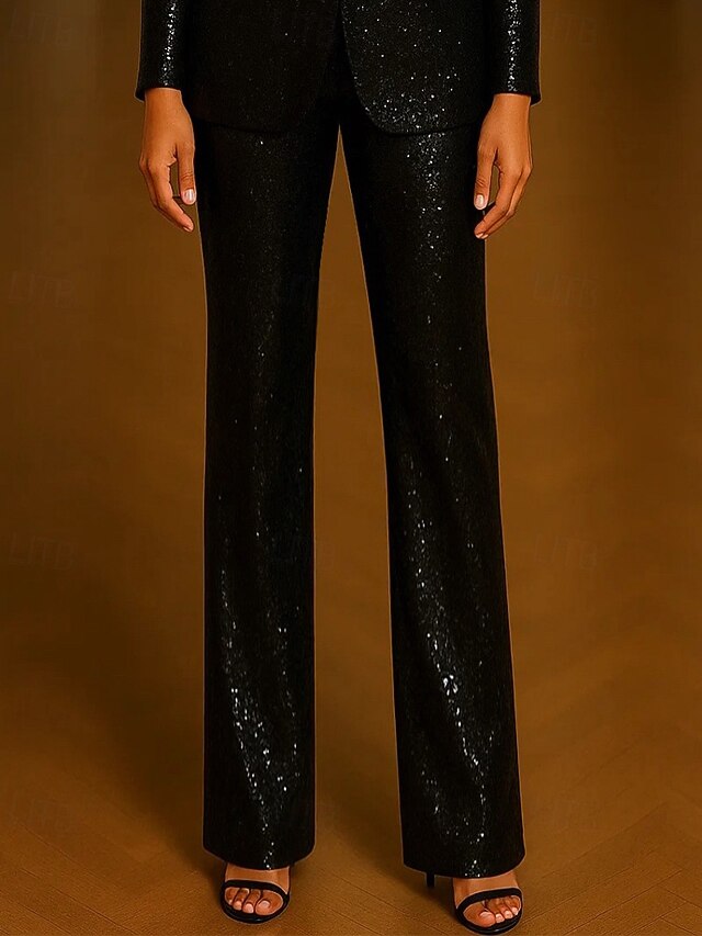 Why Choose Women's Sequin Suit Pant Straight Fit Formal Wedding Guest Formal Evening Sequin Solid Color Elegant straightforward Ankle Length Pant?