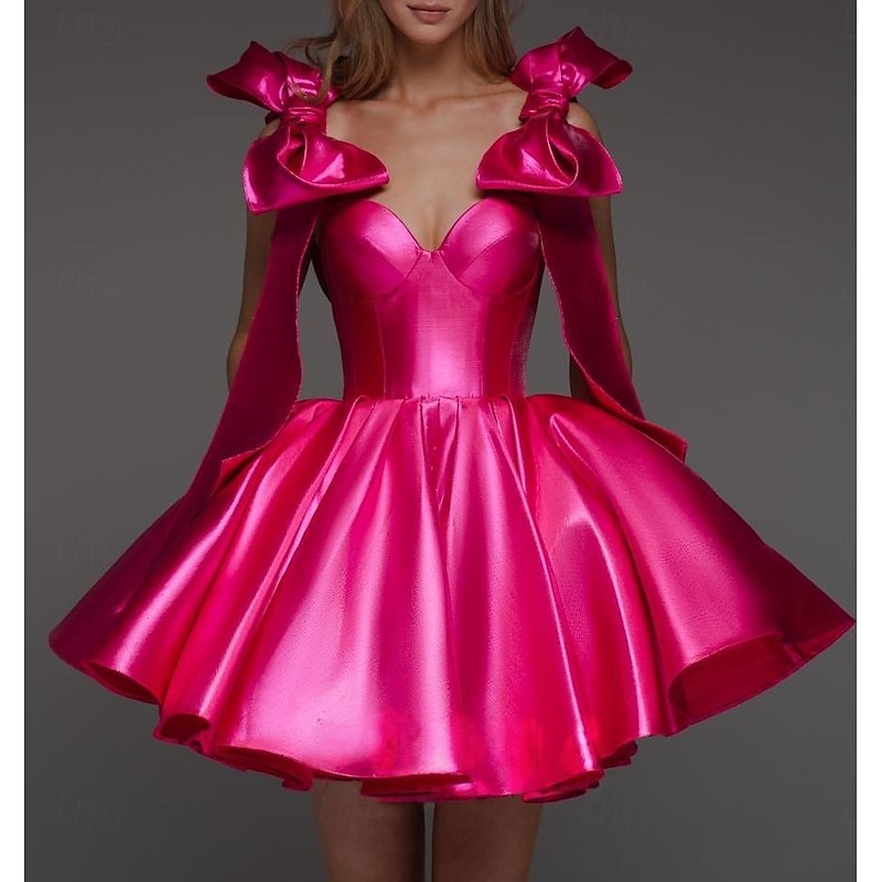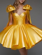 More information about A-Line Homecoming Dresses Corsets Dress Holiday Graduation Short / Mini Sleeveless Spaghetti Strap Satin with Bow(s)