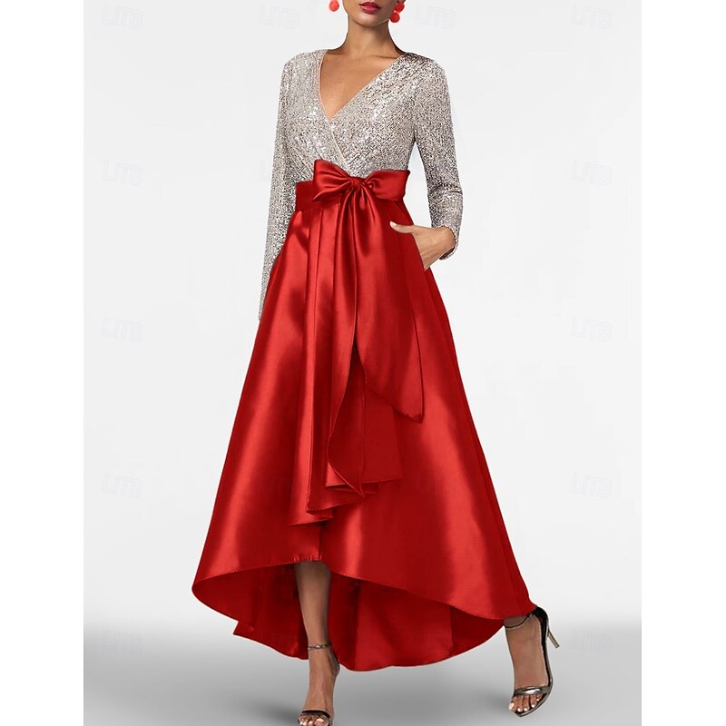This A-Line Cocktail Dresses Elegant Dress Formal Wedding Asymmetrical Long Sleeve V Neck Pocket Satin with Bow(s) combines elegant design with practical functionality. Every detail has been carefully considered to ensure you get the foremost possible experience. The finest construction means this product will serve you well for years to come.
