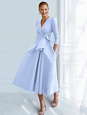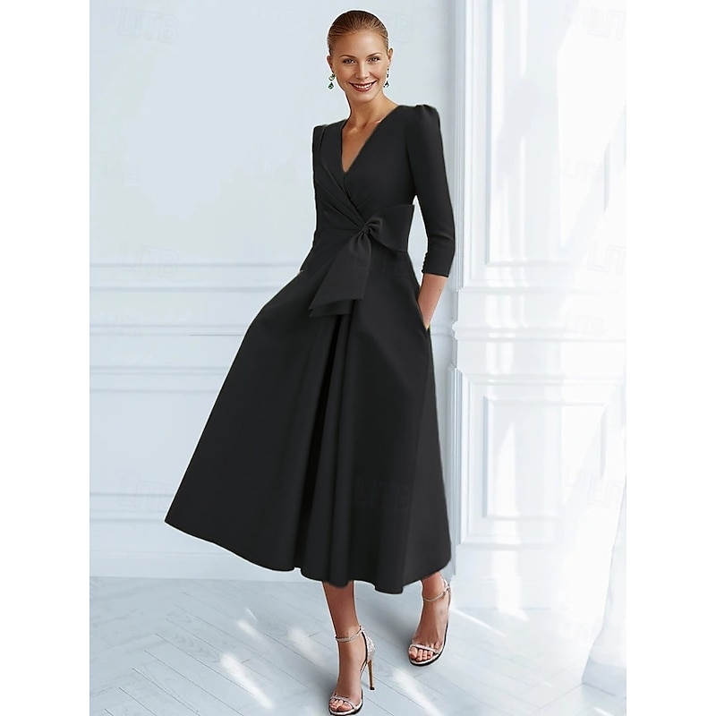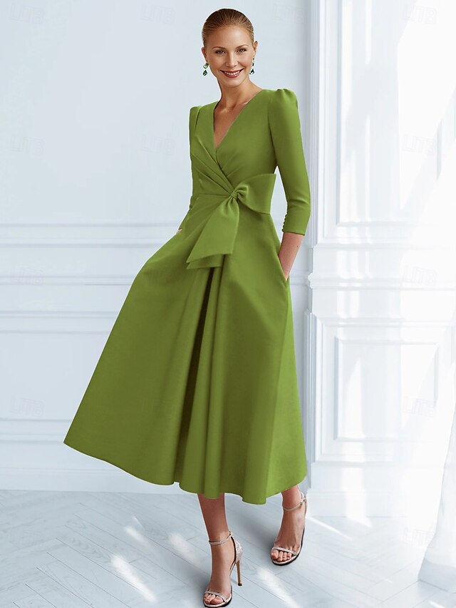 Why Choose A-Line Cocktail Dresses Elegant Dress Formal Ankle Length 3/4 Length Sleeve V Neck Pocket with Bow(s) Ruched Dresses?