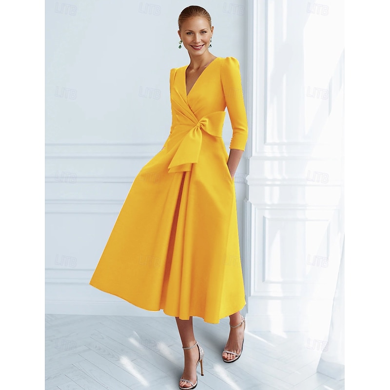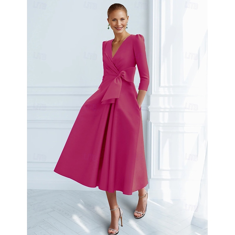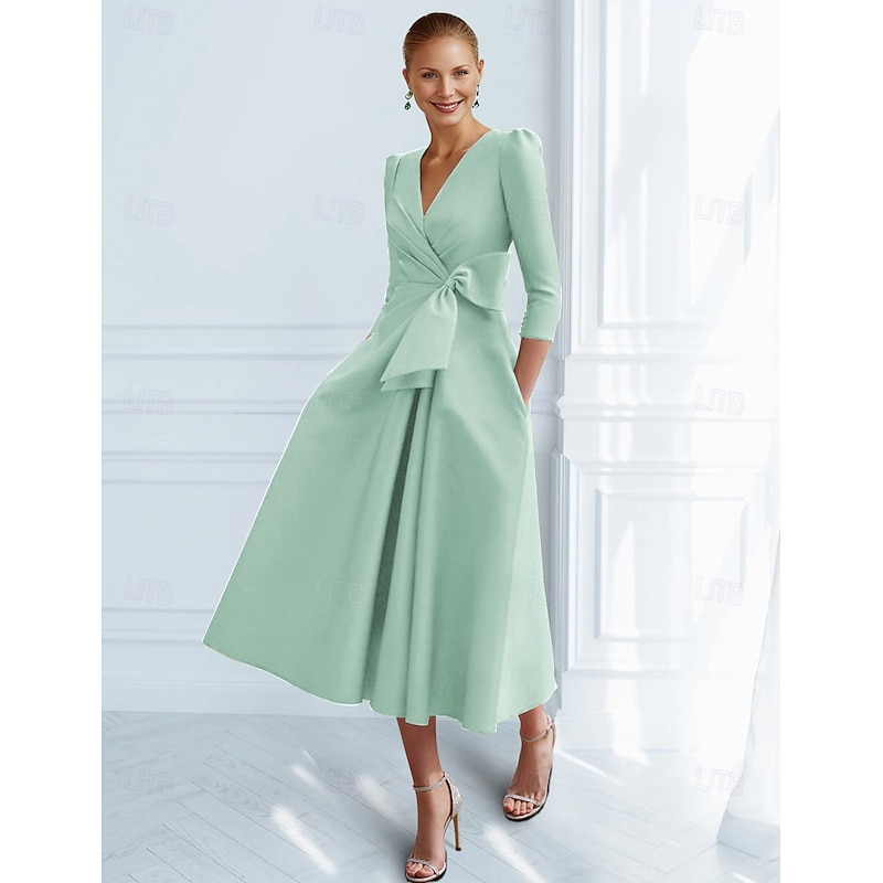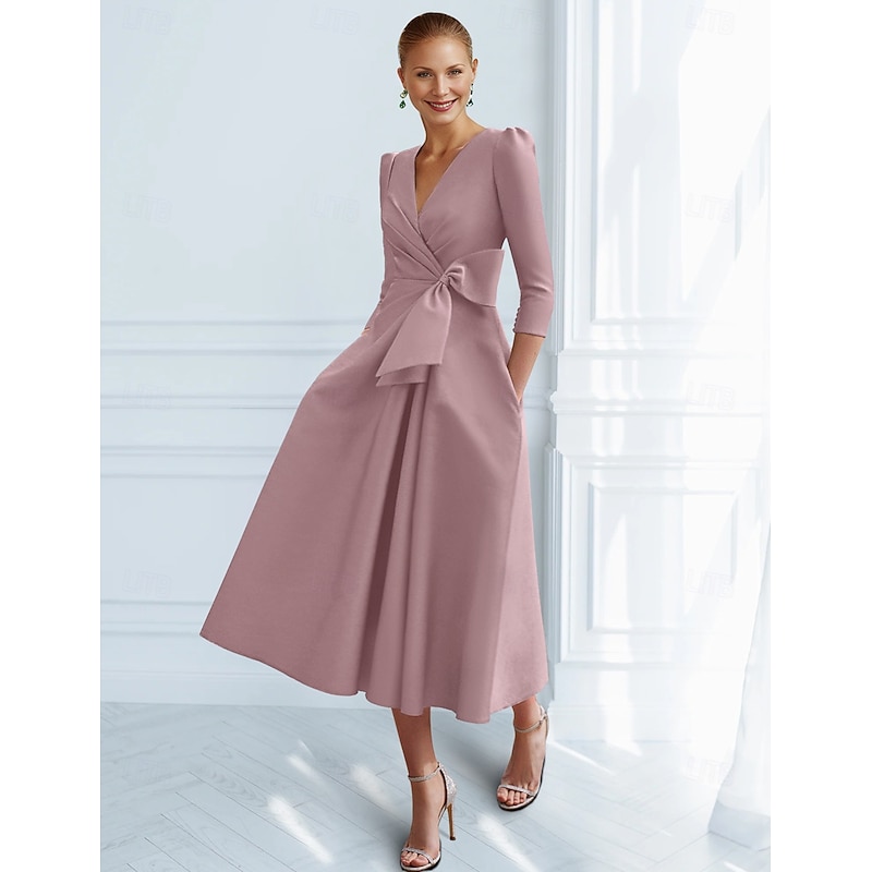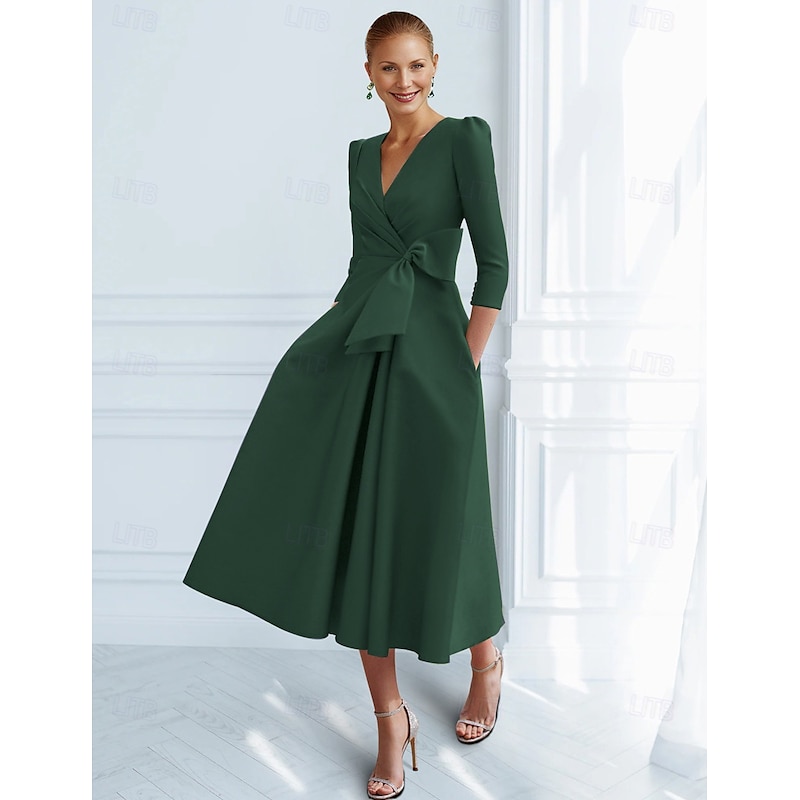 This A-Line Cocktail Dresses Elegant Dress Formal Ankle Length 3/4 Length Sleeve V Neck Pocket with Bow(s) Ruched Dresses combines elegant design with practical functionality. Every detail has been carefully considered to ensure you get the foremost possible experience. The finest construction means this product will serve you well for years to come.
