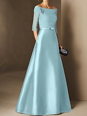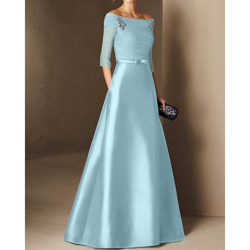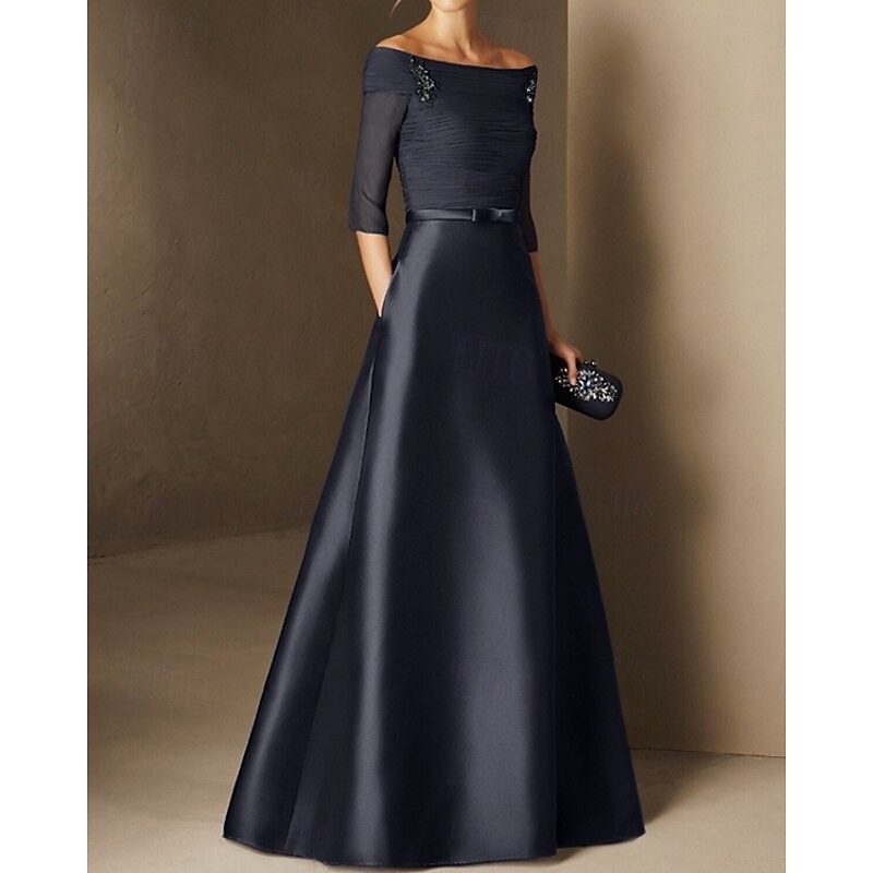 More information about A-Line Mother of the Bride Evening Gown Elegant Dress Engagement Formal Evening Floor Length Half Sleeve Off Shoulder Fall Wedding Guest Chiffon with Ruched