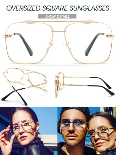 • HD UV400 PROTECTION FOR YOUR EYES ► Oversized square aviator sunglasses: step down lens rim have artistic cutting craftmanship and perfect fit metal frame to make the sunglasses more stereo. iconic square sunglasses can block 100% harmful UVA, UVB rays, protect your eyes against long term UV damage. Provide even greater visual comfort, deflects envious glances and gives you that rare look, make them an ideal choice for sunny days.