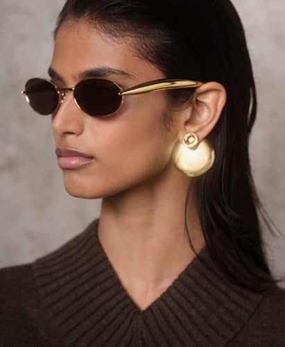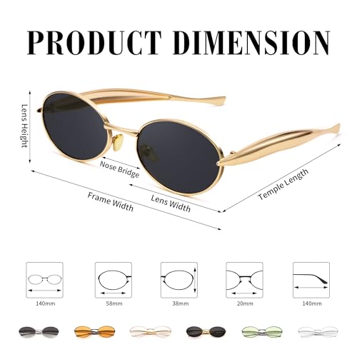 Retro Oval Small Sunglasses for Women Men - Trendy Vintage Gold Metal Sun Glasses