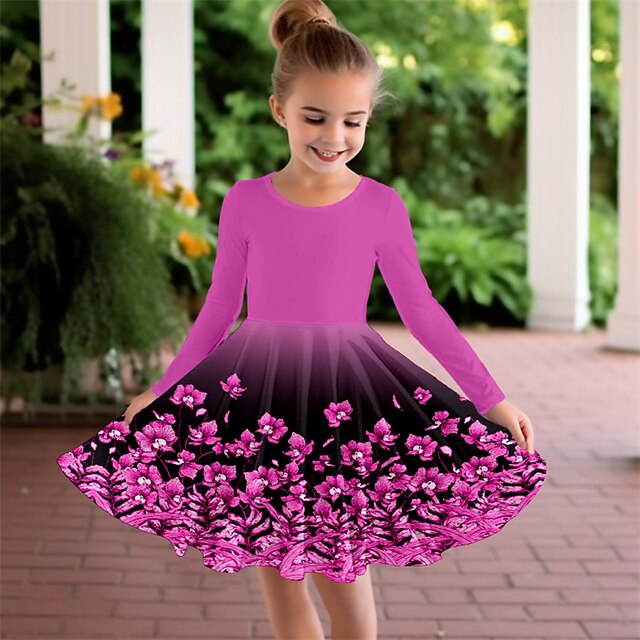 Why Choose Girls' 3D Floral Dress Long Sleeve 3D Print Spring Fall Vacation Sports & Outdoor Daily Cute Casual elegant Kids 3-12 Years Casual Dress A Line Dress Above Knee Regular Fit?