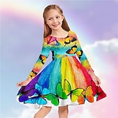 in-demand ! Kids Girls' Dress Animal Rainbow Butterfly Long Sleeve Casual Crewneck Adorable Daily Polyester Above Knee Casual Dress Swing Dress A Line Dress Fall Winter 3-10 Years Multicolor