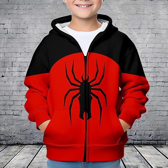 in-demand ! Boys 3D Spider Hoodie Coat Outerwear Long Sleeve Fall Winter Active Streetwear Cool Kids 3-12 Years Zip Street Daily Regular Fit
