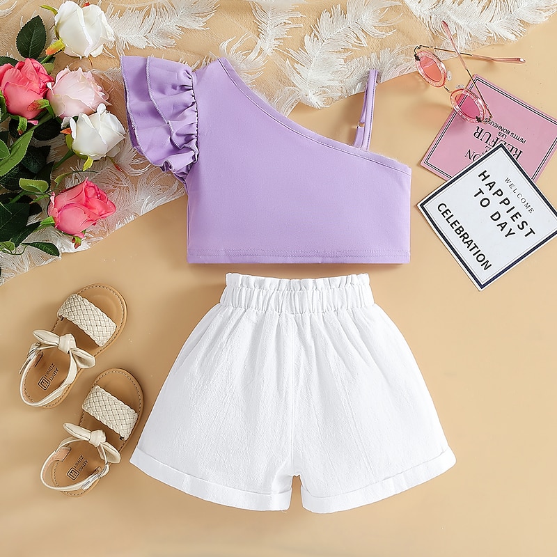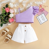More information about 2 Pieces Kids Girls' Children's Day Solid Color Halter Tank Top & Shorts Set Set Sleeveless Fashion Outdoor Cotton 3-7 Years Summer Red Purple