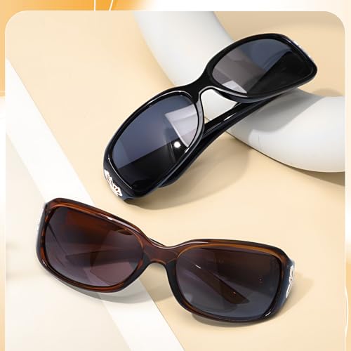 2 Pack Polarized Sunglasses for Women Wraparound Butterfly Design Oversized Frame UV400 Protection
