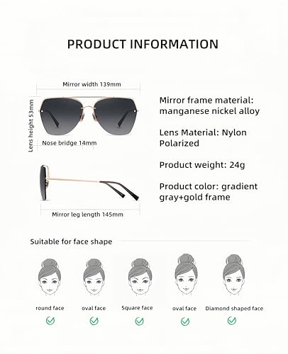More information about HEPTICS Oversized Aviator Sunglasses, Polarized UV Protection, Metal Half-Frame, Rose Gold Frame with Gray Gradient Lens,Retro Sunglasses for Men Women