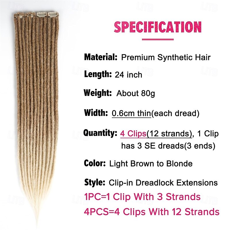 $34.99 - Clip in Dreadlock Hair Extensions 4PCS Clip in Dreads 24 Inch Synthetic Extensions Light Brown to Blonde Long Natural Soft Thin 0.6cm Width Dreadlocks for Women 2025. Shop for cheap Crochet Hair online? Buy at lightinthebox.com on sale today!
