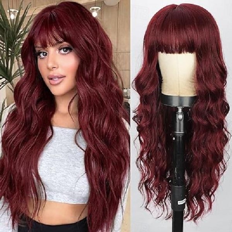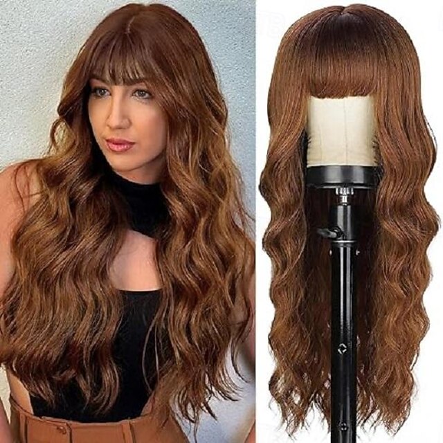 in-demand ! Wig With Bangs Long Wavy Wig For Women Wigs Synthetic Curly wig Natural Looking Heat Resistant Hair For Daily Party Cosplay Use 26 Inches Halloween Wigs