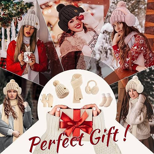 Yusongirl Winter Women Scarf Gloves Beanie Ear Muffs Socks Set Cold Weather thermal Knit Hat Fleece Long Neck Warmer 5 in 1 Set