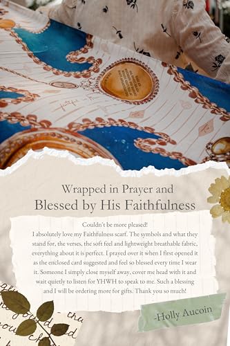 Fabric type: 100% PolyesterCare instructions: Hand Wash OnlyOrigin: ImportedInspirational Design: Created during moments of prayerful gratitude, each symbol and verse on this scarf was chosen to anchor your faith and inspire intimacy with our timeless God, it's a commitment, a prayer, and a declaration that God is dependable. Psa 36:5; 91:4; Isa 25:1, Jer 31:3, Lam 3:22, Phi 1:6, 1 Thes 5:24, 2 Tim 2:11-13A Unique Gift for Christian Women: This scarf is an exquisite gift that speaks volumes of your care and shared beliefs. Perfect for encouraging friends, family, or community members, it serves as a constant reminder of Godβs faithfulness and a elegant expression of solidarity in the Christian faith.A Beautiful Drape for All Occasions - This prayer cloth can be worn as a head covering for prayer, as a comforting wrap during personal study, or as an elegant Christian accessory to church, while traveling, or when attending an event.Pray in Comfort - This full-length prayer scarf is soft and lightweight and wonβt easily slide off your head or shoulders, making it perfect for praying or meditating.Handle with Care - Unlike traditional rigid tallit scarves, our Bible scarf is thin and light. To preserve its fine fabric, keep it away from sharp objects. Handwash with similar colors and dry flat. Perfect for everyday use. first-class materials and excellent craftsmanship ensure long-lasting durability.