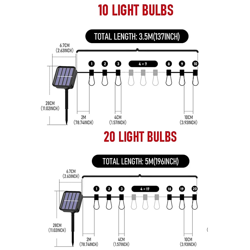 More information about Solar Bulb String Lights Outdoor Solar Waterproof Retro Bulb Fairy String Lights 3M-10LEDs 5M-20LEDs 7M-30LEDs for Cafe Wedding Party Patio Holiday Decoration IP65 Garden Light